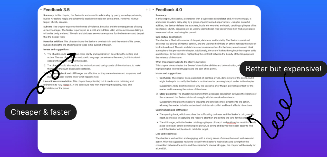 Using ChatGPT’s feedback, we can focus on creating cliffhangers that leave readers wanting more and linking them to a subscription model like Patreon.